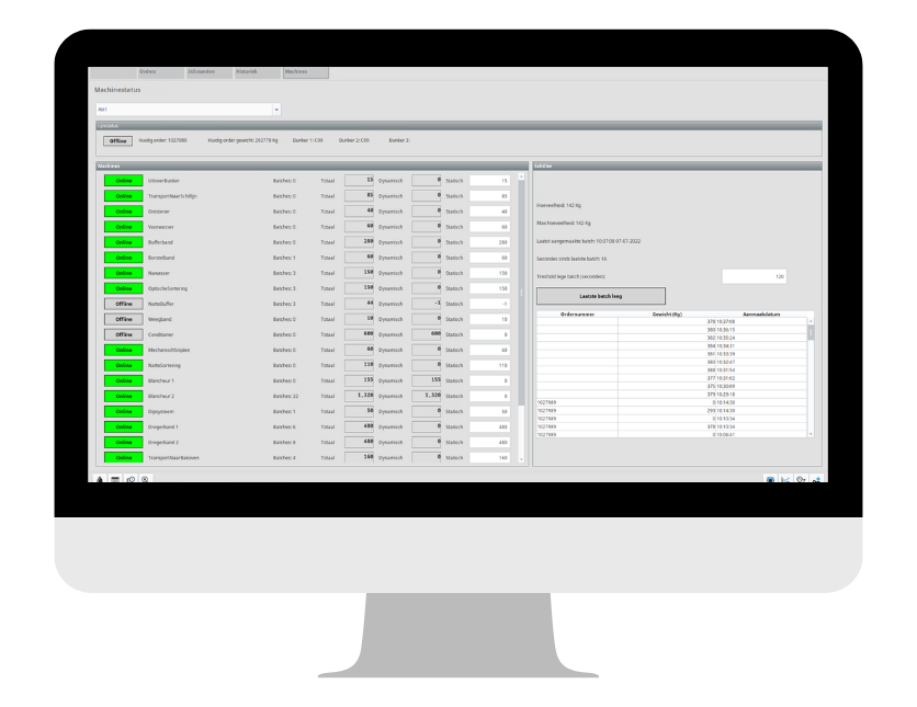 Om de bestaande data meer context te geven, hebben we een mini-MES applicatie op het Ignition-platform gebouwd. Hiermee wordt niet alleen elke order geregistreerd, maar ook gedetailleerde informatie over start- en stoptijden van batches, grondstoffengebruik en automatische registratie van stilstanden.